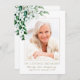 Tacka din familj och vänner för att de närvarade vid din älskades begravning och för deras snälla meddelanden med detta eleganta personliga blomsterfoto tackkort. Denna eleganta designmall har ett foto på framsidan med accentuerade, handmålade vita magnoliavattenfärgblommor i det övre vänstra hörnet. Under fotot står det i skrivstil "In Loving Memory" med namn och datum för att anpassa. Baksidan av kortet har ditt tackmeddelande, signatur och citat som du också kan anpassa. Designad av konstnären ©Susan Coffey.