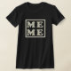 Meme T-Shirt. Den här vuxen t-shirt är en perfekt gåva till varje mormor som kallas Meme i stället för mormor. (elaken mormor eller mormor i Fransk och albaner.) Den svarta och vita/grädda kvadratiska utformningen, som säger Meme, är enkel, minimalistisk, elegant, ren, modern och contemporary.