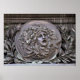 Gorgon Medusas skrynklande och avlossade huvud tillsammans med två blad och en smidande satyr på Athenas sköld. Laurel löv, segersymboler för Athena, ram skölden. Den här bilden kommer från basen av en staty som är dedikerad till författaren Friedrich Schiller.