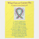 Konsten har "Blue, Marigold, and Lila Awareness Ribbon Angel" för att visa stöd för blåscancer. Konsten visar en skyddsängel som håller ett lila-, marigold- och blått medvetandeband och dikt "What Cancer Not Do" snurrar runt den. Dikt säger "Vad cancer inte kan göra, cancer är så begränsadt.." Det kan inte lamslå kärlek. Det kan inte skingra hoppet. Den kan inte bekräfta tron. Det kan inte förstöra freden. Den kan inte döda vänskap. Den kan inte undertrycka minnen. Den kan inte tysta modet. Det kan inte invadera själen. Det kan inte stjäla evigt liv. Den kan inte erövra andan. - Författare okänd" Se till att anpassningsbarna blir medveten om cancer genom filtar för dig själv eller som en gåva till en älskad. Lägg till ditt eget ord eller bilder till den här mjuka filten för speciellt medvetande om cancergåvor.