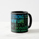 Den svarta, attraktiva utformningen av contemporaryn i representativ grönt och blått för livets gåva i medvetenhet om transplantation och organdonation. Designad av någon nära resan. Mugg stil och inuti/handtag färg kan ändras till dina önskemål. Visas i skogen grönt. Håll dig stark, krigare och få ut budskapet för organdonation!