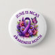 Knappen för att öka medvetenheten om lila på menyfliksområdet, fjäril och blommor MCAS Mast Cell Activation Syndrome. Lila polka, punktband. Juni är MCAS-månaden.