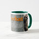 Alla det favorit- däggdjur, meerkaten på en 11 uns mugg med ordbokdefinitionen skrivev ut på den. Full färgbild.