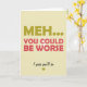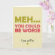 Förbered din bästa axelryckning och chockera dem med detta passionerade budskap: Meh... Du kunde ha varit värre.