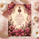 Ett elegant mulberryssskade bröllop pavilion indisk bröllop-kort för mehndi-ceremoni (mehandi). Formgivningen har motiv för blommigten på Kalyana Mandapa (bröllop-paviljongen som anses vara helig ställe) och en matchande mall för motsatsen. Texten är modern och kan lätt bli personlig. En Mehandi-ceremoni tillhör till anpassningsbar och ritualer som genomförs innan man gifter sig och utbyter vokarna.