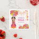 Mehndi söt indiansk henna brude med rosa och gult paraplyer och personlig av teasslor.