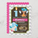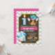 Cute rosa och Blue Fairy-inbjudan till flicka. Inbjudan har grått och vit chevron mönster, blått svamphus och rosa tillbaka.