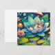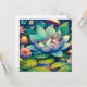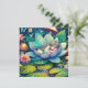 Cute Little Fairy sover på en lotus blomma på en lilyplatta med blommor och svampbakgrund. Exemplet Cute-sagolen stil. Tomt kort.