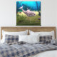 Cute leende delfin på en blå fantasi-bakgrund. Perfekt till alla som kärlek dessa fantastisk djur