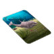Cute leende delfin på en blå fantasi-bakgrund. Perfekt till alla som kärlek dessa fantastisk djur
