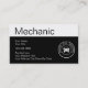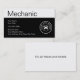 Mekanikervisitkortmall med en ny design som inkluderar ordmekanikern i en enkel men djärv orientering på bekläda, med all din information om den affärsinformation och kontakten och den unika sakkunniga mekanikeremblemen. Designat för en auto mekaniker, en maskinist eller en yrkesmässig automatisk ingenjör.