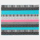 Mekanisk text av textilremsor med flera färgader i rosa, blått och vitt.