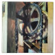Susan's design -- Bild på en drivkedja och kugghjul i en kvarn. Jag tyckte om de geometriska formerna av det runda kugghjulet och träets rektanglar och kugghjulets intressanta skugga.