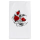Kontur, mekanisk krescent måne med växlar, dekorerad med röd ros med svarta spetsar och löv på vit bakgrund. Steampunk