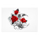 Kontur, mekanisk krescent måne med växlar, dekorerad med röd ros med svarta spetsar och löv på vit bakgrund. Steampunk
