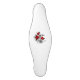 Kontur, mekanisk krescent måne med växlar, dekorerad med röd ros med svarta spetsar och löv på vit bakgrund. Steampunk