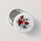 Kontur, mekanisk krescent måne med växlar, dekorerad med röd ros med svarta spetsar och löv på vit bakgrund. Steampunk