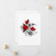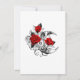 Kontur, mekanisk krescent måne med växlar, dekorerad med röd ros med svarta spetsar och löv på vit bakgrund. Steampunk