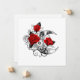 Kontur, mekanisk krescent måne med växlar, dekorerad med röd ros med svarta spetsar och löv på vit bakgrund. Steampunk
