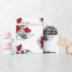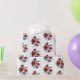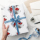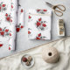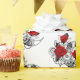 Kontur, mekanisk krescent måne med växlar, dekorerad med röd ros med svarta spetsar och löv på vit bakgrund. Steampunk