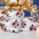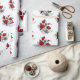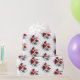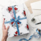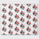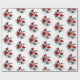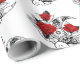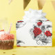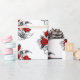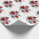 Kontur, mekanisk krescent måne med växlar, dekorerad med röd ros med svarta spetsar och löv på vit bakgrund. Steampunk