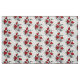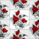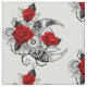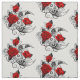 Kontur, mekanisk krescent måne med växlar, dekorerad med röd ros med svarta spetsar och löv på vit bakgrund. Steampunk