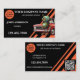 Affärskort med en öga-fångstdesign i svart och orange med en bil och en robot. Bilen och roboten är separata filer och kan tas bort om du inte behöver dem. En logotyp-mall och en enkel anpassning av QR-kodmallen läggs till. Underbar för en professionell bilmekaniker.