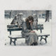 Melancholy Angel in Snowy Park Ink Drawing Vykort