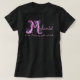 Söt hand teckning av brev M monogram namn betyder t-shirt. Perfekt för en personlig gåva till en tjej som har en namn som börjar med M. Det här exemplet läser Melanie Mörk. Tröga, mjuka och skarpa, eller så kan du anpassa texten med ditt eget namn och mening om det behövs. Idealisk som speciell födelsedag eller firande-gåva. Kontakta mig om du behöver hjälp med din egen personlig namn. Versalt brev M-fysiska hjärtan och blommor teckning och grafisk konvertering i skuggor av mörk marin, rosa, vit och lila © unikt skapat av Sarah Trett. www.sarahtrett.com för www.mylittleeden.com