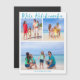 Chic anpassade strand-familjens fotokollage Julmagnet-kort med dina favorittropiska foton i sol och brev inuti. Lägg till 3 av dina favoritminnen från din ö-semester till kusten på framsidan och ett på baksidan. Ett vackert magnetkort vid kusten med en ren, modern fotograflayout och ett söt blått skript.