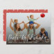 Mele Kalikimaka Hawaiian Helgdag card har en bild, ett typografiskt skript Mele Kalikimaka i handskrivet trendig, önskemål , år och trendigets bakgrund på baksidan.