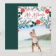 Skicka semesterhälsningar till vänner och familj, ön-stil, med våra tropiska helgdag. Designen innehåller ditt favoritfoto med den hawaiiska julen "Mele Kalikimaka" i röd handskriven typografi, försedd med vibranta röda poinsettiska blommor och holly löv som kaskade över fotot. Anpassa med namn och det år du är instoppad i designen.