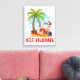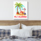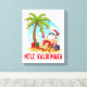This vibrant and whimsical design perfectly captures the spirit of a "Mele Kalikimaka" holiday! It features Santa Claus in full vacation mode, relaxing under a palm tree adorned with festive Christmas lights and ornaments. Santa, sporting cool sunglasses, red swim trunks, and flip-flops, sips a colorful tropical drink with an umbrella, embodying ultimate relaxation. He's comfortably seated in a beach chair, surrounded by golden sand, charming seashells, and brightly wrapped presents. The cheerful sunny sky with fluffy clouds completes this warm, cartoonish illustration, making it an ideal representation of a playful holiday getaway.