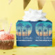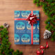Denna söta anpassningsbar av hawaiiska julen party som omsluter pappra inslag är en tropisk strandsolnedgång på en coola blå bakgrund med en teckning av kustnära träd mot ett havsbottenläge. Mele Kalikimaka skriven i kursiv typografi på dessa helgdag av söt personlig.