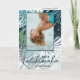 Tropiska botaniska ormbunkar och lövverk i blå, turkos och grön accentuerar ditt foto på framsidan av dessa vikta julkort med Mele Kalikimaka i chic skrivstil. Din personliga hälsning och namn skrivs ut på insidan.