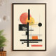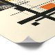 Vi presenterar 'Solnedgångsgeometri: Abstrakt komposition från mitten av seklet', en affisch som fångar andan av modern konst från mitten av seklet med en samtida twist. Verket visar en abstrakt arrangemang av geometriska former och linjer, med varma solnedgångsfärger i rött och gult som ger en skarp kontrast mot de svarta och neutrala elementen. Kompositionen är en symfoni av balans och asymmetri, som frammanar en känsla av nostalgi samtidigt som den är fast förankrad i moderna designprinciper. Det är ett mångsidigt verk som kan stå på egen hand eller ingå i en gallerivägg, perfekt för dem som uppskattar konst som knyter an till både det förflutna och nutiden.