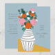 Dela ditt bröllopsdatum med denna midcentury-inspirerade blommiga design med en randig keramisk vas och djärva illustrerade blommor. Folkkonststilen och den moderna färgpaletten skapar en kreativ, designorienterad känsla som är perfekt för konstälskare och moderna firanden. En ren layout håller fokus på era namn medan illustrationen lägger till personlighet och charm.