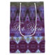 En designad presentpåse med medelhög storlek elegant, i mörk lila, ljusblå och olivfri grönt. Du kan växla textens storlek till valfri namn eller så går det att ta bort texten.