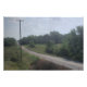 Mellow road rolls up through a pleasant rural countryside under sky lightened by pale clouds. Greens and blues in the scene present a cheerful aspect. There's a farmhouse set back from the road, almost hidden by leafy shade trees... you almost could go right past without noticing it.