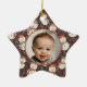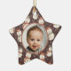 Baby's first Christmas photo ornament with a cute neutral earth tone Christmas snowman pattern with mellow smiling cream snowmen in terra cotta red hats and scarfs set on a chocolate brown background with line drawn flowers and holly. The photo and "Brandon's Merry First Christmas!" text are fully customizable using the Zazzle template functions. This design is part of the Mellow Snowmen Christmas collection where you will find many matching products like cards, pillows, stickers, gift wrap, ribbons, and tags, and custom stockings. There is also a Mellow Snowmen Xmas collection that uses the same snowmen pattern in fun traditional candy cane red and kelly green colors. The cute baby boy stock photo is by Christian Bowen on Unsplash. Merry Christmas!