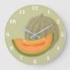 En snyggt Khaki grönt Kitchen Clock med vita siffror och en digital illustration av en juicy cantaloupe melon. Besök vår affär för fler väggskåp och andra artiklar.