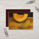 Det här artistkortet har bra konsfotografering av två segment av guldfärgad orange-meloner. De är så lustiga, juicen kan ses på träskivor. Gröntens och gultens mönster i struktur sköljs mot guld och brunt yta plus träväggen bakom skapar en intressant abstrakt av färg och form. Originalfotografiet har digitalt förbättrats för att betona den övergripande stämningen hos detta imponerande, konstnärliga och stillastående livstidning.