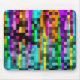 Färgdroppar med flera färgader blandade med ett korsordsrutnät skapar en färgstark abstrakt med visuellt intresse.