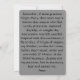 Fråga den välsignade Mor om hjälp. På framsidan av detta vackra kristna platta kort (med eller utan kuvert) finns en bild av Jungfru Mary (en staty som jag fotograferade) och baksidan har en okänd författares bön för Memorare. Vissa tror att det har skrivits av Clairvaux abbot på 1700-talet och att det har använts i stor utsträckning av den Fransk prästen Claude Bernard i hans mission till de fattiga på 1700-talet.