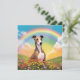 Ett personlig-minneskort för textutdrag med en vacker målning av ett piskavla på himmelska backe med ett vackert regnbåge. Symbolisningen av hund har passerat regnbågsbron till himlen. Du kan anpassa den med ditt eget Whipping hund's namn eller någon annan text på baksidan av kortet. Gör en speciell minnesstund eller sympatigåva till ett hund älskare om deras kära hund har passerat.