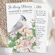 Memorial Blommigt Bird Dikt Funeral Prayer Card Visitkort