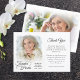 Skicka det här elegantens fotominnesstund tack för att du får ett kort från familjen till din kära för den vänlighet och medkänsla som visas under din svåra tid av förlust. Designen har ett eller två foton, en FOREVER IN OUR HEARTS typografi-design i ett calligrafiskt skript för elegant och ditt anpassningsbar-meddelande. ASSISTANS: Om du vill ha hjälp med designändringar eller anpassning, ändrar färg, överför designen till en annan produkt eller vill samordna objekt kontaktar du designern INNAN ORDERING via Chattan Zazzle MESSAGE eller e-post makeitaboutyoustore@gmail.com.