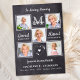 Rustic Chalkboard Unik Funeral Tack du Cards. De här sympatigravkorten har en unik fotokollage för fem av dina favoritfoton, inledande mongram och namn, en hjärtfull citattecken "In Loving Memory..."....bortkastad utanför Ord, Missad bortom mått.... i våra hjärtan" på en grått- och vit design på en tavla. Anpassa dig med ditt tack, namn och data. ...COPYRIGHT © 2020 Judy Burrows, Black Hund Art - Med alla Höger reserverade. Memorial Funeral 5 Photo Collage Sympathy - tackkort