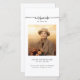 Vår Memorial Keepsaké Spanska begravningsbokmärke, som har skapats för att hedra minnet, omfamnar minnen med nåd. Framsidan har "celebrando"-skript i hjärtfilt svart calligrafi, som skapar ett serenfärgat hyllning. Anpassa den med ett älskat foto, deras namn, deras vackra livets spännvidd, och en rörande vers som ekar deras anda. Med en djupt personlig beröring har bokmärket stor betydelse. Baksidan av inbjudan är dina hjärtliga känslor, som ger utrymme för ett personligt budskap och en påfallande dikt, som ömt påminner om den själ som vi djupt saknar.