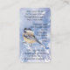 Memorial Memory Card Chickadee Bird Visitkort